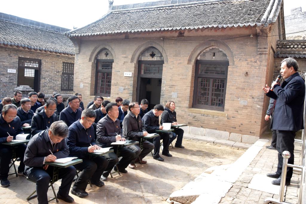 李书记讲话表示,此次前来学校旧址开展“不忘初心、牢记使命”主题党日活动有着特殊的意义。通过参观,我们寻找并看到了中北大学的初心,那就是为人民谋幸福、为国家做贡献。李书记从四个方面作出强调:一是坚定对中国共产党领导的信念和决心。正是有了党的领导、党的关怀和支持,学校才能从当初100多人发展到今天的规模,成为国防兵工事业的一面旗帜和重要力量。二是坚持为人民服务和为师生服务的信念和决心。太行工校的生存发展靠的是人民群众的支持,学校几十年发展也得到了武乡县人民的支持。学校责无旁贷对革命老区的发展加强帮助和支持,要通过深入合作,为武乡人民做更多实事。三是坚持发展“兵工中北”的信念和决心。学校起家靠的是兵工、看家本领也是兵工。从培养兵工人才到研制武器再到助力国家航天事业,从国防八子到兵工七子再到B8联盟成员,兵工是中北的特色、地位、优势,只有坚决扛起“兵工中北”的旗帜,学校才能更加有地位、才能更好地发展。四是坚持发展“创新中北”的信念和决心。首任校长刘鼎提倡的“实际”“应用”“做中学、学中做”,无一不是求真务实的体现,中北78年的发展靠的也是改革创新、求真务实,要把“创新中北”的旗帜坚决扛下去,既为国防事业也为地方经济发展做出应有贡献,才能在建校100周年的时候实现“百年百强”的中北梦。李书记最后表示,今天是一个新的起点,全体常委的思想受到新的净化、新的启迪,在为学校感到自豪的同时,也为我们增添了更多的信心。相信在一届届中北人的不断努力下,一定能够把太行工业学校时候的初衷执行好并发扬光大,一定能够办好人民满意大学。