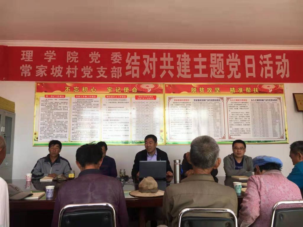 为扎实开展“不忘初心、牢记使命”主题教育,9月25日,理学院党委书记王振荣一行赴五寨县东秀庄乡常家坡村,同常家坡村党支部开展了结对共建主题党日活动,常家坡村“两委”成员、党员、驻村干部以及结对帮扶贫困户参加了此次活动。
