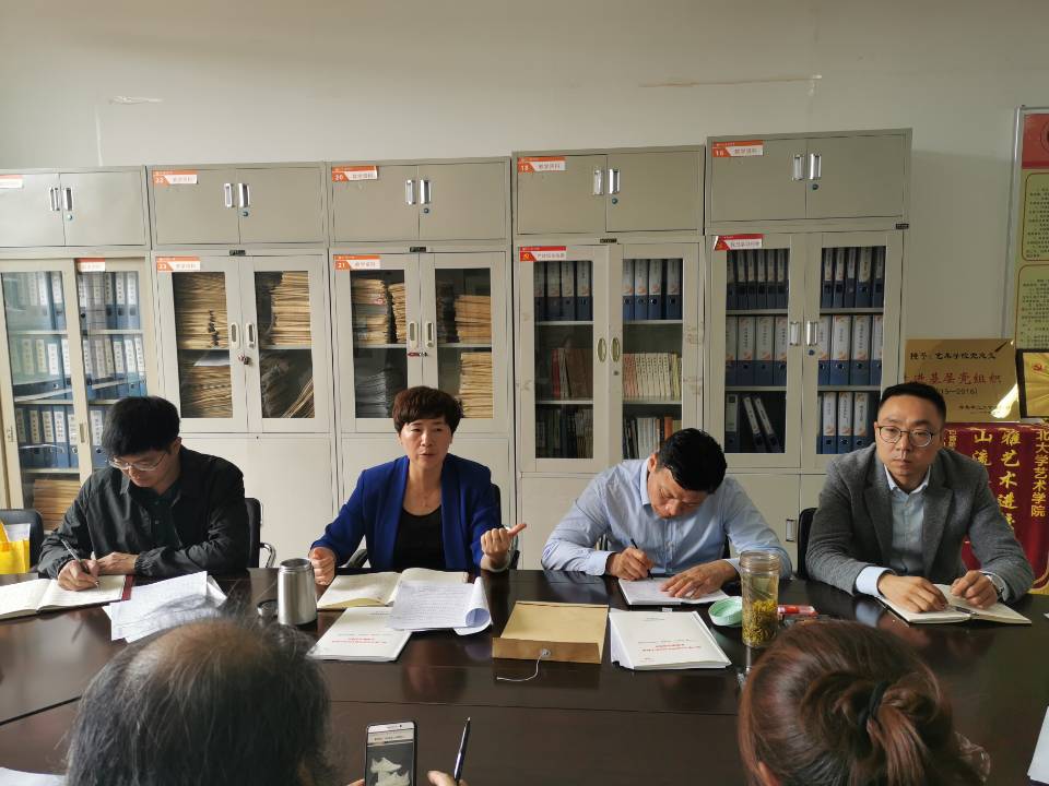 夏书记就艺术学院贯彻落实上级精神,认真组织开展“不忘初心、牢记使命”主题教育工作进行了具体安排和深入动员。她强调全体党员同志要提高政治站位,充分认识“不忘初心、牢记使命”主题教育的重要意义,准确把握“不忘初心、牢记使命”主题教育的任务要求,确保“不忘初心、牢记使命”主题教育取得成效;二是要认真学习,深入研究,切实用习近平新时代中国特色社会主义思想武装头脑,用党的最新理论成果提升自我;三是结合实际,突出实效,切实紧密结合学院工作实际,把解决思想问题与解决工作问题结合起来,为确保主题教育各项工作取得扎实成效而努力奋斗。