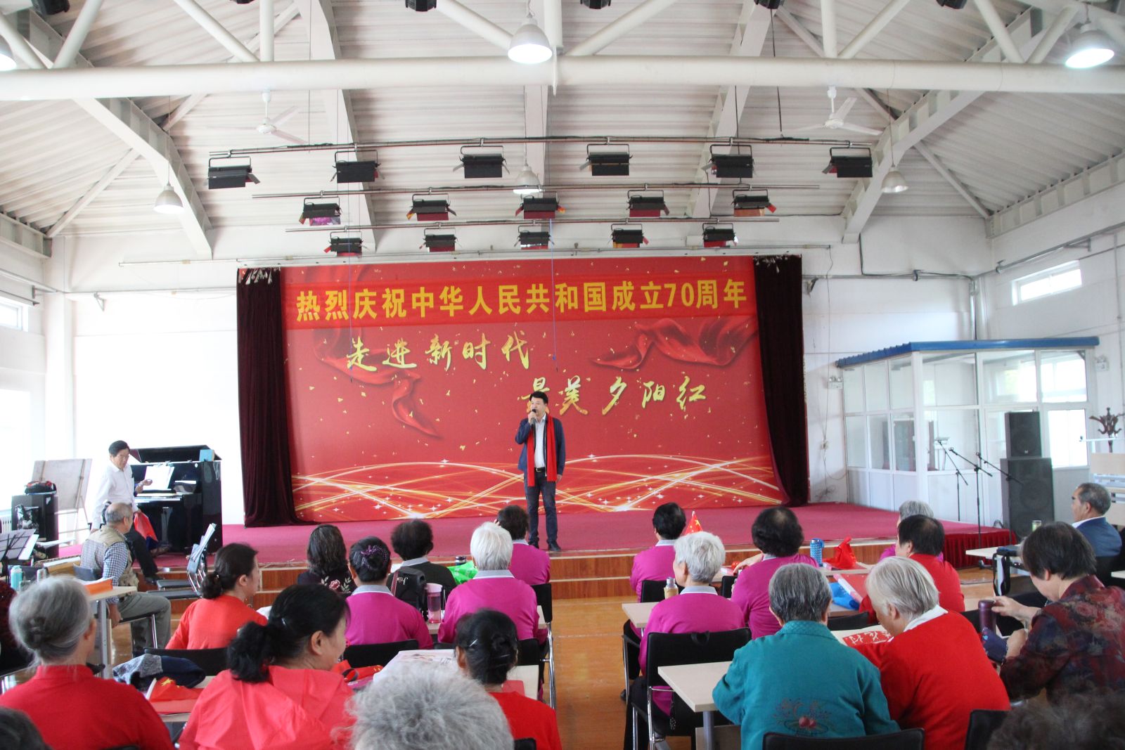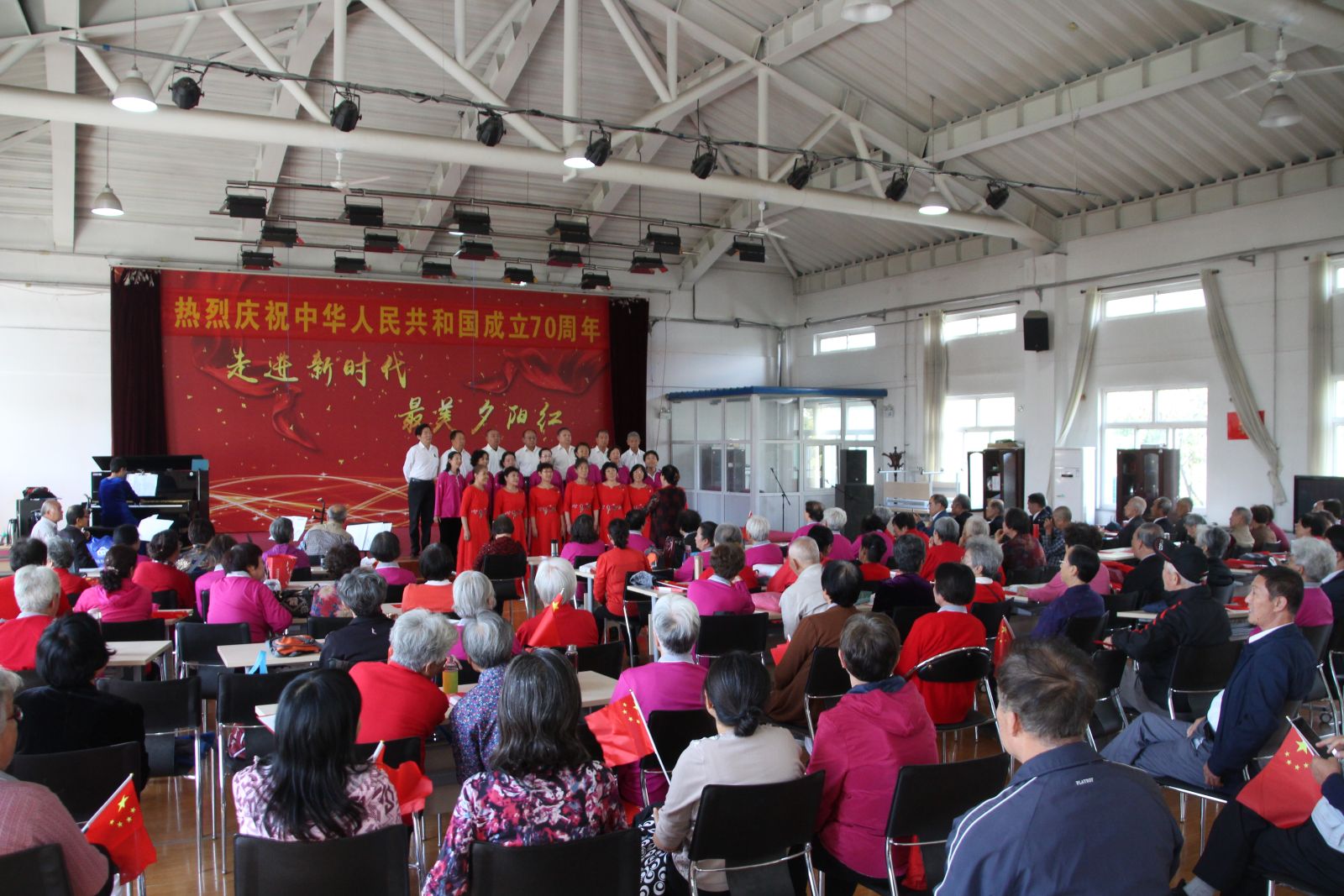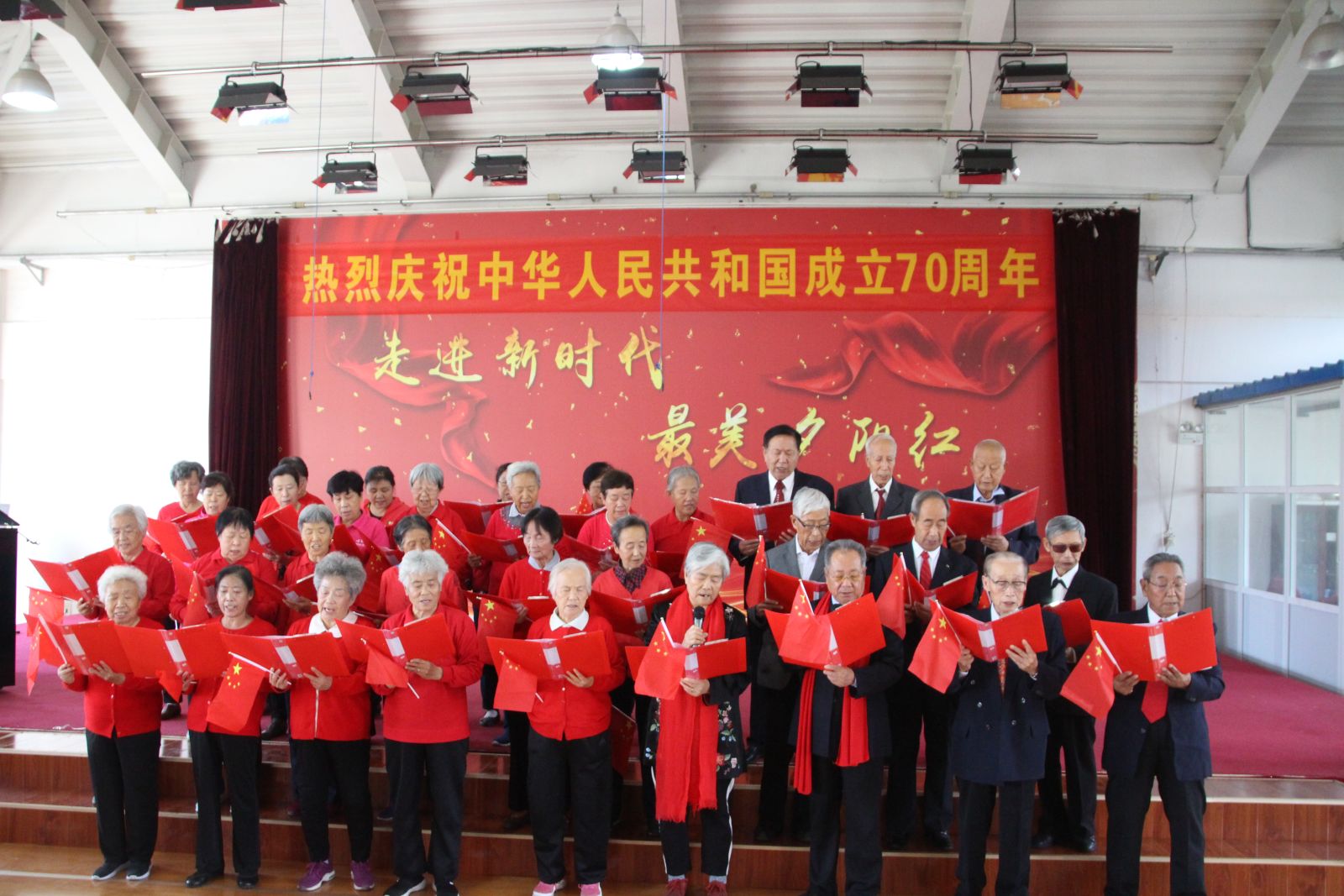 飞火流霞迎盛世,欢歌笑语贺华章。离退休人员管理处于9月26日下午组织100余名离退休同志参加“热烈庆祝中华人民共和国成立七十周年”联欢会,以此来歌颂祖国、赞美党,喜迎祖国七十华诞。