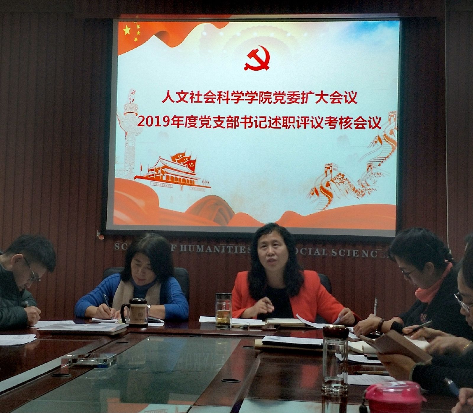为扎实推进学院“三基建设”推动党建工作深入开展,根据学校要求,人文社会科学学院党委于2019年12月25日下午在学院六层会议室组织2019年度党支部书记述职评议考核大会。学院党委委员、各党支部书记、支委参加会议。