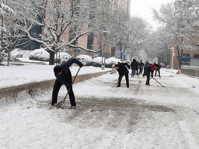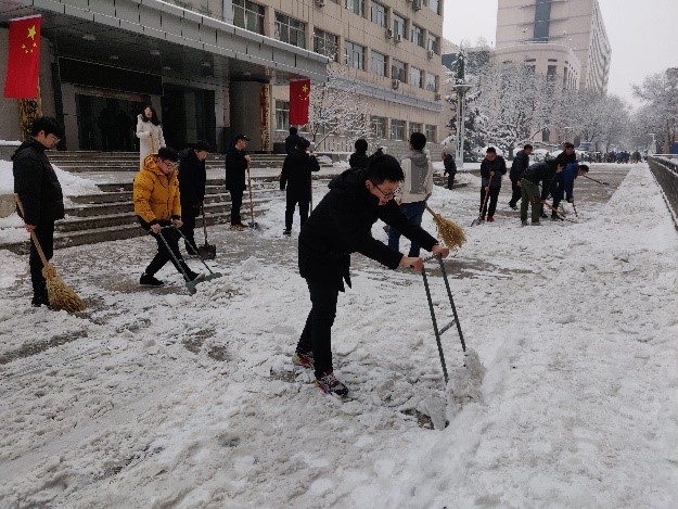 2020年的第一场大雪虽然给校园带来了冬季独特的美景,但大雪过后道路厚厚的积雪和冰冻也给中北师生的出行带来了一些不便和安全隐患。1月6日,仪器与电子学院党委响应校党委的号召,组织各支部党员、发展对象和积极分子同志,对科研楼、14号楼、重点实验室周边及道路开展了“清扫校园积雪,创设美好环境”主题党日活动,确保道路的畅通,方便师生出行。