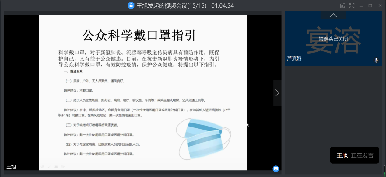 环境工程研究生党支部在主题党日活动的最后,再次学习公众科学戴口罩的知识和意义。切实做到复工复学不耽误,疫情防控不放松。