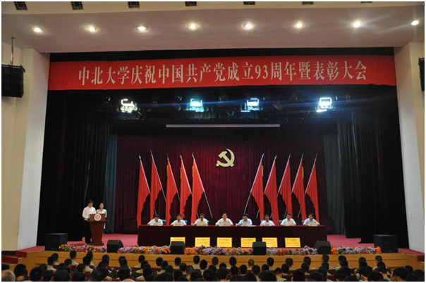 大会在激昂的《国际歌》声中开始。校长刘有智首先宣布了《中共中北大学委员会关于表彰先进基层党组织、优秀共产党员及标兵、优秀党务工作者的决定》。决定授予机电工程学院党委等6个党组织“先进基层党组织”荣誉称号;授予机械与动力工程学院机械工程教工第三党支部等34个党组织“先进党支部”荣誉称号;授予图书(档案)馆图书馆党小组等8个党组织“先进党小组”荣誉称号;授予丑修建等15名同志“优秀共产党员标兵”荣誉称号;授予郭云霞等184名同志“优秀共产党员”荣誉称号;授予薛实军等36名同志“优秀党务工作者”荣誉称号。大会向以上先进个人和集体颁奖。
