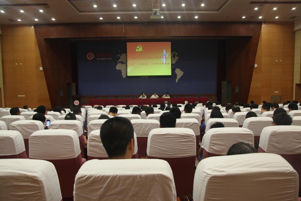 校党委书记李忠人在讲话中回顾了中国共产党的光辉历史,指出中国共产党是一个伟大的党,中国共产党的诞生和执政,是历史的选择、人民的选择、时代的选择。回顾中国共产党历史,中国共产党是一个不断创新、与时俱进的党,是一个襟怀坦白、光明磊落、勇于自新的党,是一个一心一意为最广大人民谋利益、为人民服务的政党。历史和实践证明,办好中国的事情关键在党!只有中国共产党,才能发展中国。为进一步加强学校党的建设,开展好近期有关建党的纪念活动,进一步增强党员意识、发挥党员作用,增强凝聚力、战斗力,李书记强调:一是广大党员干部要牢固树立对党的领导的信任,在思想、行动上与党组织保持高度一致。二是各级党组织要召开中心组和支部学习活动,学习宣传党的十八大以来的光辉成就,学习传达习近平总书记视察山西重要讲话精神,并不折不扣落实。三是各党支部要召开组织生活会,全面回顾党的历史,体会党的伟大,坚定信念,将党员精神调动起来,充分发挥党员先锋模范带头作用。四是要在学校、各学院层面,及时召开党员入党宣誓大会,重温党的历史,使党员真正体会党的神圣性,明确党员责任,增强为党荣誉。五是要把学校近期有关开展庆祝中国共产党成立96周年活动安排的各项任务落实好。