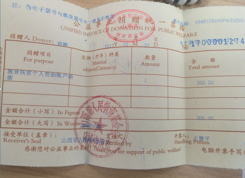 目前,所有捐助款项已经统一上缴至山西省人民教育基金会指定账户。涓流共汇,足以涌成江河;绵力齐聚,定能众志成城;感谢众多爱心人士的积极帮助,希望贫困地区人民和家庭经济困难的学生早日走出贫困,奔向小康!