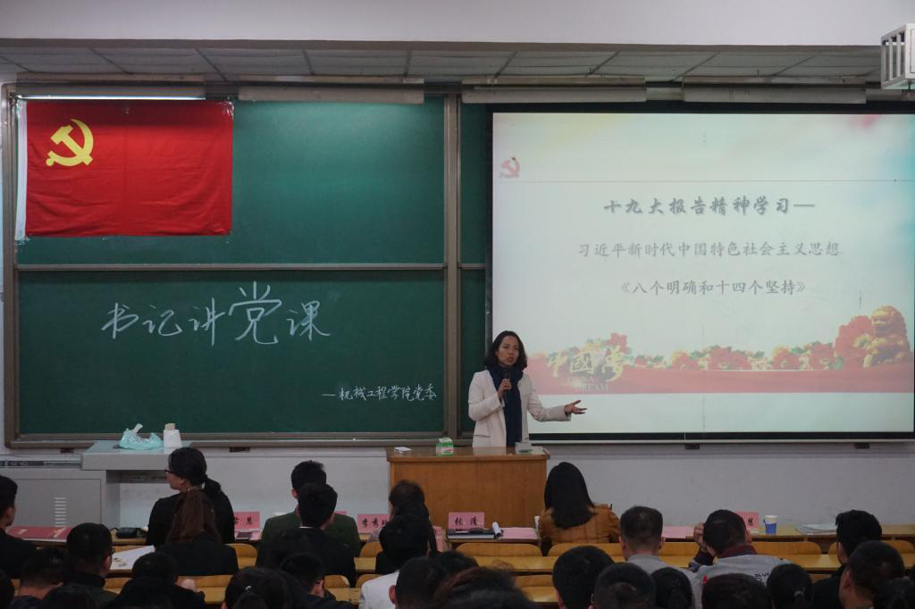 为了深入推广十九大精神,进一步加强党员对先进理论知识的学习。机械工程学院于2018年3月23日下午在08101教室举办党委书记讲党课活动。本次活动主讲人为机械工程学院党委书记张清老师,学院全体学生党员参加了本次活动。