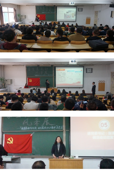 3月3日下午,机械工程学院学生党建办公室于08101教室顺利举办了学生党支部风采展及 “进基层观新时代巨变,访万家传十九大精神”寒假活动成果展。机械工程学院党委书记张清、党委副书记李秀玲、学生科王子威、王瑾、王慧慧、苗慧老师出席本次活动,机械工程学院全体党员共同参与了本次活动。