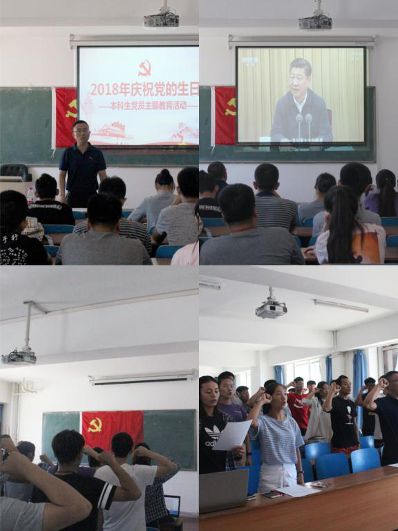 首先,学生党员代表怀鹏归带领全体本科生党员进行宣誓,重温入党誓词。李老师提出要大家认真学习习近平总书记系列讲话及十九大精神,加强党的理论知识学习,做新时代合格党员,并引导毕业生党员主动帮助同学,牢记党员的责任和义务,在文明离校之际继续发挥先锋模范作用。希望每一位党员都能坚定理想信念、牢记党员身份,带头遵守校纪校规,始终保持党员先进性和纯洁性。最后,组织全体党员观看纪录片《辉煌中国》。