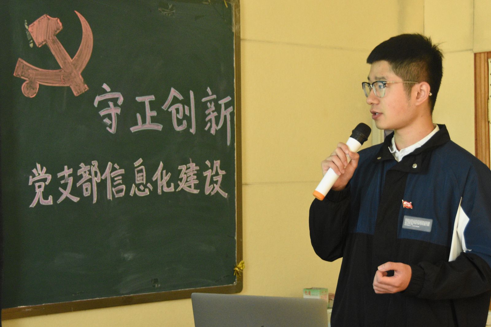 软件学院组织员郭乐祥以“守正创新,推进党建信息化建设”为主题,对软件学院在全国党员信息管理系统的基础上,开展的“码里行间铸信仰”微信公众号建设和“码间支部”微信小程序进行了详细的介绍。软件学院从学院专业的实际特点出发,码上言马,码上建马,引导学生在码里行间铸写对党的坚定信念、铸就坚定信仰;学院党员服务中心主任杨延军同学就党建软件“码间支部”微信小程序的开发背景、适用范围、团队情况、项目开展的重要意义进行阐述。