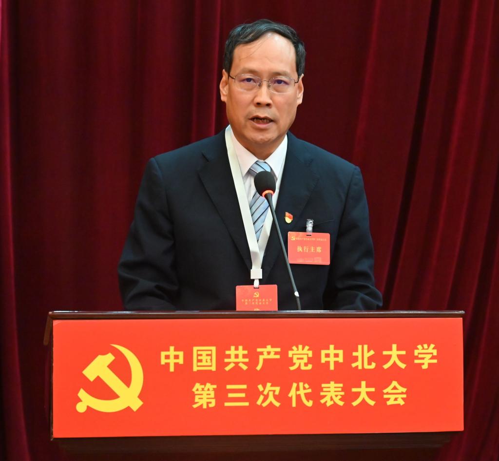 马骏代表省委教育工委、省教育厅向大会的召开表示热烈祝贺。他指出,近年来,中北大学在省委、省政府的坚强领导下,始终坚持党的教育方针和社会主义办学方向,不断深化综合改革,着力提升内涵式发展质量,在党的建设、思想政治工作、人才培养、社会服务等方面取得了显著成绩。工程学、材料学、化学3个学科群进入ESI全球排名前1%,学科实力持续增强,高峰高原建设迈上新台阶。国家级科研项目数和科研经费分别达到“十二五”时期的1.5倍和1.8倍,省部共建动态测试技术国家重点实验室获科技部批准正式运行,实现国家级平台的突破,科研水平不断提升,服务转型发展能力有效增强。入选教育部“全国高校黄大年式教师团队”1个,新增科技部重点领域创新团队1个、国防科技创新团队2个、山西省科技创新团队3个,培育国家级人才13名,为事业发展提供了强有力人才保障和智力支持。聚焦“六新”突破,围绕信创、集成电路、通航产业与地方政府和企业共建产业学院,与中国科学院大学等共建国科大太原能源材料学院,在晋城、长治等市成立产业技术研究院,社会服务取得重大进展。这些成绩的取得,是学校党委团结奋进、开拓创新的结果,是广大师生和党员干部凝心聚力、砥砺前行的结果,充分证明了党的领导是坚强有力的,各级党组织和广大党员在推进事业改革发展中的重要作用是不可替代的。为进一步推动学校高质量发展,他提出三点意见:一是以党的政治建设为统领,全面加强和改进党的建设和思想政治工作;二是以提升办学质量为目标,全面深化各领域综合改革;三是以严肃换届纪律为保证,全面凝聚干事创业合力。他希望大家不辱使命,同心同德,把这次大会开成一个统一思想、坚定信心的大会。希望大家持续认真贯彻落实习近平总书记视察山西重要讲话重要指示及关于教育的重要论述,创新推动学校综合实力和办学水平迈上新台阶,为全力冲击“双一流”高校团结奋进、继往开来、再创辉煌!省委教育工委、省教育厅将一如既往地关心和支持中北大学的改革和发展。