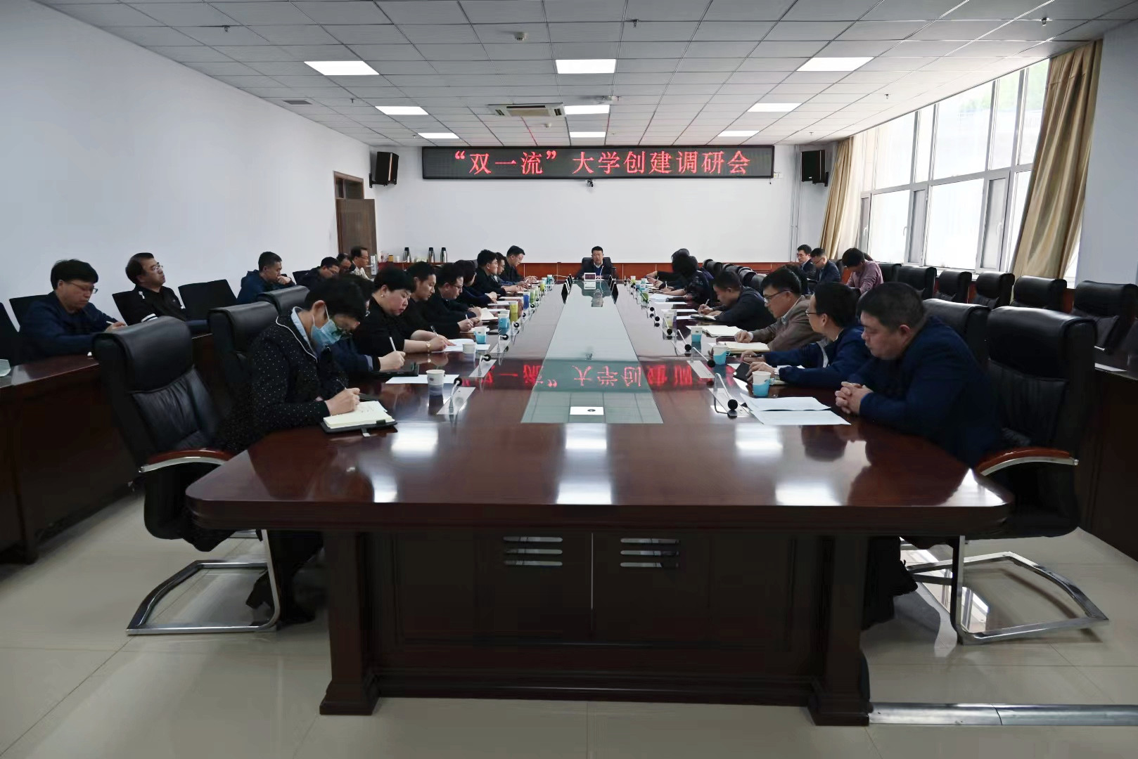学习贯彻习近平新时代中国特色社会主义思想主题教育开展以来,校党委始终坚持把理论学习、调查研究、推动发展、检视整改贯通起来,有机融合、一体推进。5月8日下午,校党委书记沈兴全主持召开学校“双一流”大学创建调研会,深入实际、深入一线、深入师生,围绕学校“双一流”创建目标,从解决制约学校发展的瓶颈和难题出发,实事求是查问题、寻思路、找办法,真正把调研成果转化为解决实际问题、促进学校高质量发展的宝贵经验。办公室、人力资源部、发展改革部、科研院、研究生院、学生工作部、教务部等部门相关负责人及各学院教师代表参加会议。