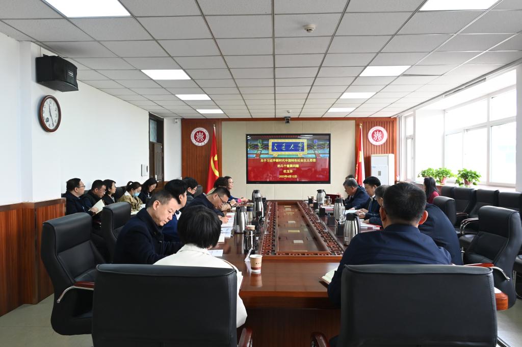 沈兴全要求:一是要提高站位,把思想和行动统一到习近平总书记重要讲话精神上来。全校上下要按照党中央的部署,深入开展学习贯彻习近平新时代中国特色社会主义思想主题教育,要深刻认识开展主题教育的重大意义,引导全校党员干部深学笃行习近平新时代中国特色社会主义思想,全面落实党的二十大精神,坚定拥护“两个确立”、坚决做到“两个维护”。二是要主动谋划,做好全校主题教育各项工作。三是要统筹兼顾,高质量推动主题教育取得实效。要坚持“两手抓、两促进”,把开展主题教育同贯彻落实党的二十大精神相结合,同学习贯彻全国两会精神结合起来,同学习贯彻习近平总书记考察调研山西重要讲话重要指示精神结合起来,同破解学校高质量发展瓶颈难题相结合,同一刻不停推进全面从严治党相结合,同推进学校“十四五”发展规划相结合,同创建“双一流”高校相结合,做到一体学习、一体贯彻、一体落实,坚持不懈用习近平新时代中国特色社会主义思想凝心铸魂,将主题教育成果转化为切实推动学校改革发展的强大力量。